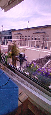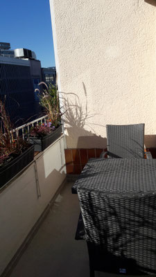 Essecke für bis zu vier Personen, direkt am sonnigen Balkon.