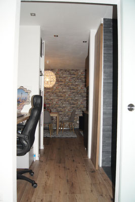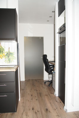 mit der grossen Arbeitsplatte befindet sich im Durchgang vom Wohn- zum Schlafzimmer. Direktes Licht durch die beiden grossen Fenster. Telefon, Drucker, ASDL-Anschlüsse, Aktenschrank und ein